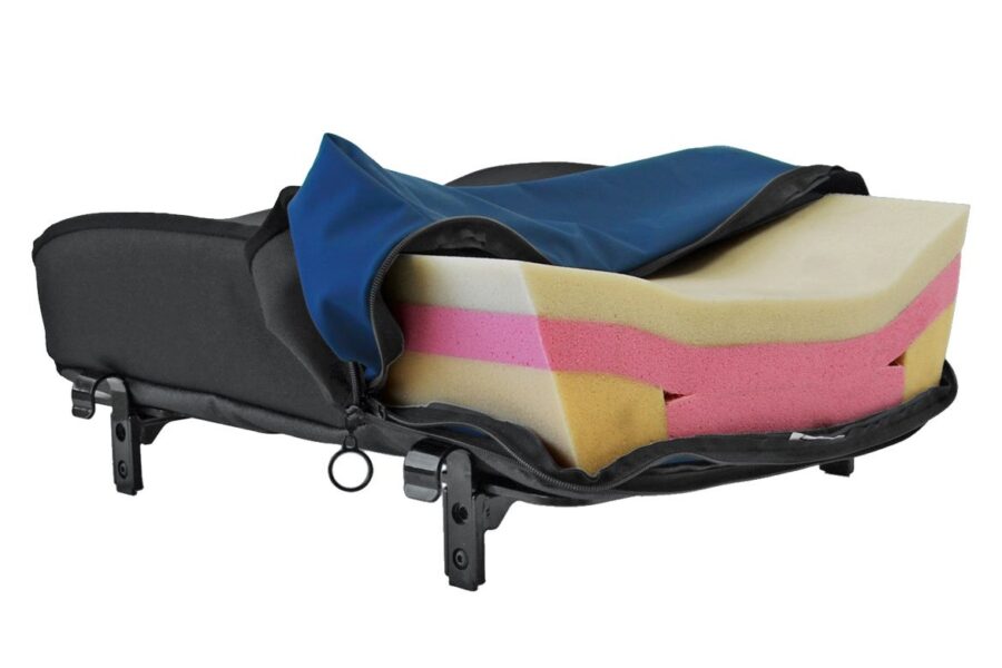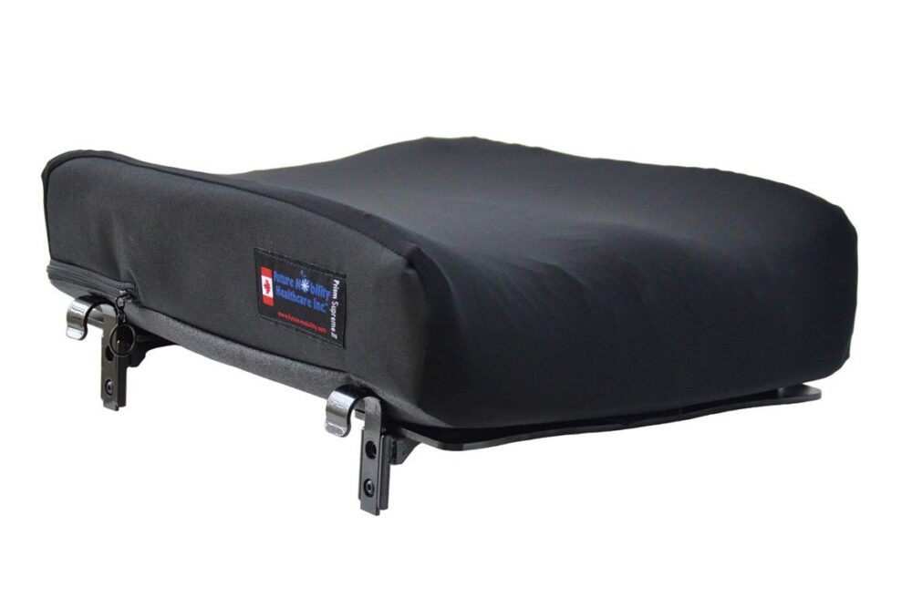 Cushion Wheelchair Prism Adjustable Drop Base lowers seat cushion height to create improved fit underneath tables or desks. It also makes propulsion by foot easier. Made of aluminum and lightweight. A unique design allows the cushion to easily breathe while still providing stability for the wheelchair’s user.