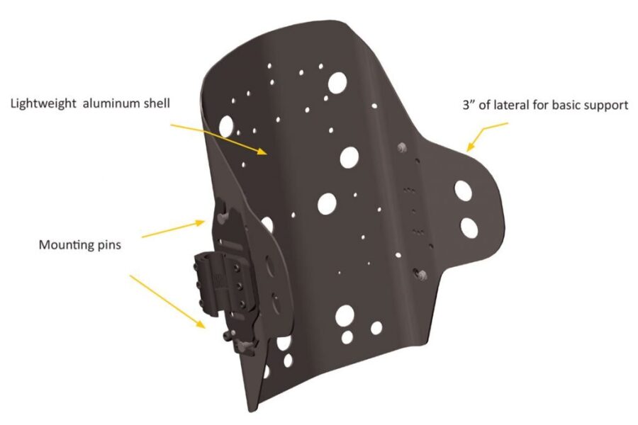 Our Quick Release Mounting Hardware is designed to be strong, durable, and easy-to-use. This hardware is made to withstand the wear and tear of alternating removals and re-attachments. You simply click the silver-flip on the back in order to take the back-rest out. Three screws that are tightened and un-tightened with an Alan Key allow for height adjustments to the hardware.